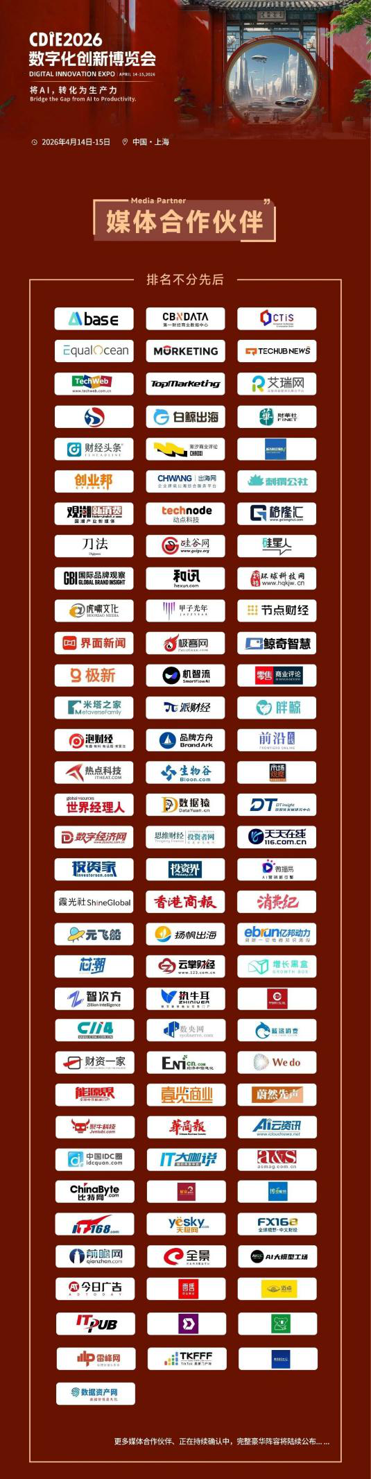 CDIE2026作為數(shù)字化領(lǐng)域的年度盛會,其籌備進(jìn)程始終備受行業(yè)矚目。目前已成功攜手100+國內(nèi)外主流媒體與垂直領(lǐng)域頭部媒體達(dá)成深度合作,構(gòu)建起覆蓋科技、金融、制造、零售、消費(fèi)等多個(gè)賽道的全媒體傳播矩陣。
