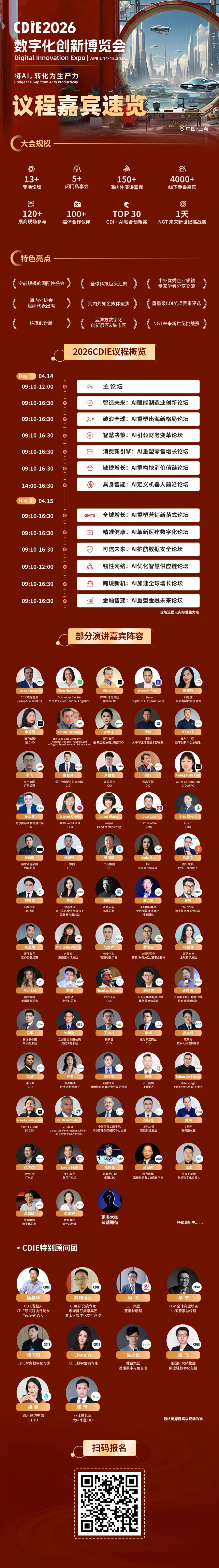 本次CDIE2026數(shù)字化創(chuàng)新博覽會已成功邀約數(shù)百位全球頂尖企業(yè)數(shù)字化領(lǐng)袖,他們將齊聚上海,分享前沿洞察。