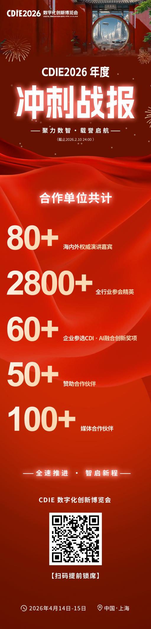在此關(guān)鍵突破期,2026第十二屆CDIE數(shù)字化創(chuàng)新博覽會 將于2026年4月14日-15日在中國上海舉行。