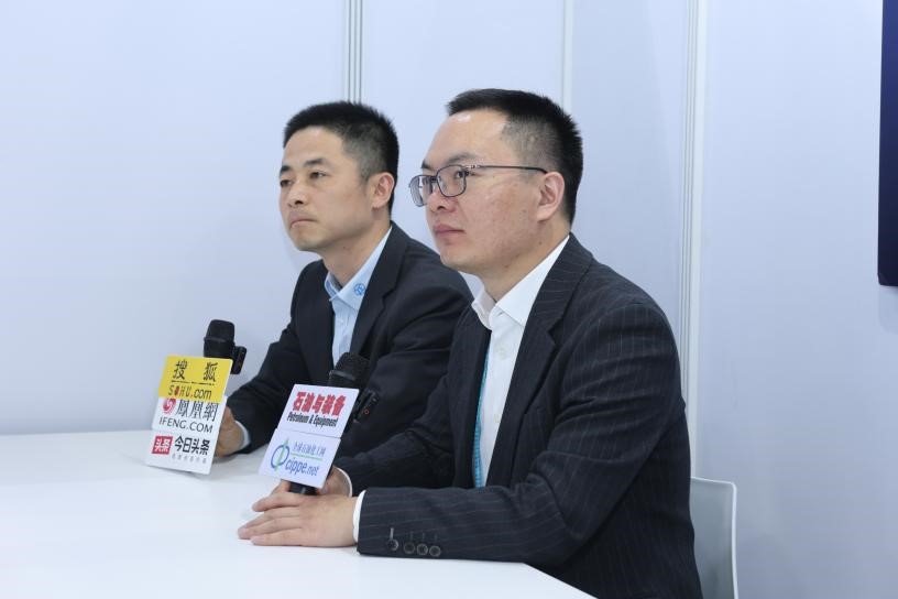采埃孚工業(yè)技術事業(yè)部物料搬運系統(tǒng)和特種傳動中國區(qū)負責人林振國、應用經(jīng)理朱小鋒在2026北京石油展現(xiàn)場接受媒體專訪