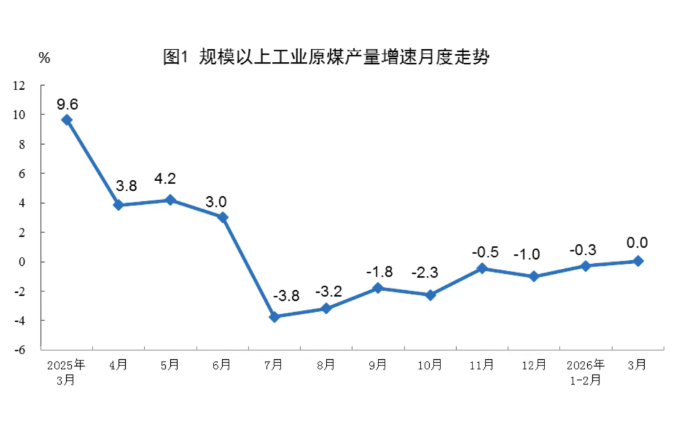 1—3月份,規(guī)上工業(yè)原煤產(chǎn)量12.0億噸,同比增長0.1%。