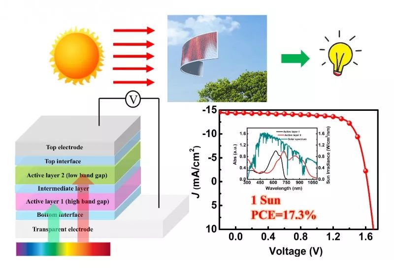 陳永勝教授團隊與中科院國家納米科學(xué)中心丁黎明教授、華南理工大學(xué)葉軒立教授研究團隊合作,首先利用半經(jīng)驗?zāi)P停瑥睦碚撋项A(yù)測了有機太陽能電池實際可以達到的最高效率和理想活性層材料的參數(shù)要求。在此基礎(chǔ)上,采用成本低廉與工業(yè)化生產(chǎn)兼容的溶液加工方法制備得到了高效的有機太陽能墊層器件,獲得了17.3%的驗證效率。