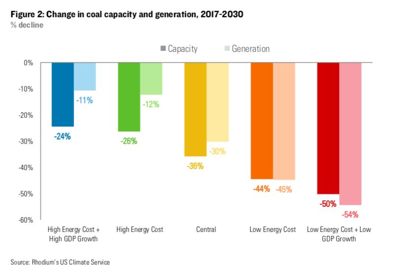 新預(yù)測(cè)基于其在6月份發(fā)布的2018年采購庫存報(bào)告中收集的數(shù)據(jù),使用一系列方案來預(yù)測(cè)煤炭產(chǎn)能的退役和煤炭總發(fā)電量的減少。