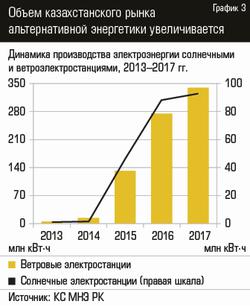 據(jù)NEM RK統(tǒng)計(jì)委員會(huì),在過去十年可再生能源發(fā)電的總體比例為8-12%(見。圖1)。高利率相比,在過渡到“綠色”經(jīng)濟(jì)的概念,指出 - 的統(tǒng)計(jì)數(shù)據(jù)的匯總水,風(fēng)和太陽的能量,只是在最大的水電占幾乎全部來自可再生能源(參見圖2)的電力的功能的結(jié)果。憑心而論,應(yīng)該指出的是,風(fēng)力發(fā)電和太陽能發(fā)電在國內(nèi)有了很大的發(fā)展,在過去幾年中(參見圖3)。只有在2017年,根據(jù)“電力能源和電力市場的運(yùn)作報(bào)告,”哈薩克斯坦電力協(xié)會(huì),在風(fēng)力發(fā)電量達(dá)23.5%,產(chǎn)量的增加,這也讓他們采取的0股,占該國總發(fā)電量的3%。太陽能發(fā)電廠的產(chǎn)量增加 - 占2017年太陽能總發(fā)電量的4%,占0.1%。事實(shí)證明,太陽和風(fēng)的總份額僅占該國總發(fā)電量的0.4%,為了實(shí)現(xiàn)這一概念的目標(biāo),共和國需要增加可再生能源的數(shù)量。在國家支持替代能源的條件下,這項(xiàng)任務(wù)看起來非常可行。