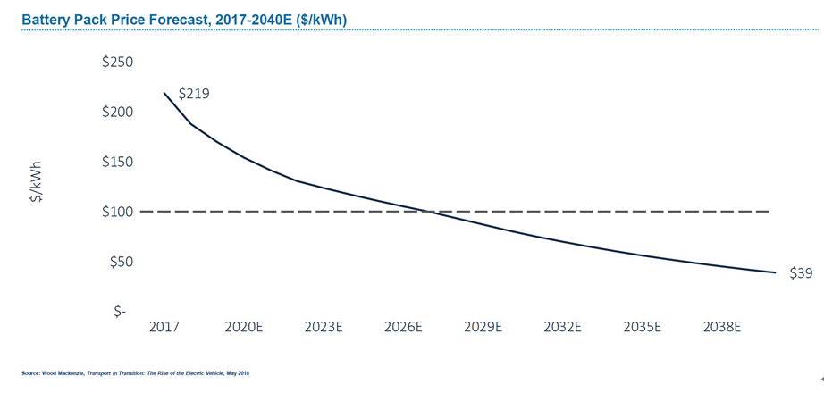 到2040年,電池價格預計將下降80%以上。“我們預計到2025年產量將翻兩番。,”McCarthy說,“產量每增加一倍,我們就會看到電池的價格將會降低5%到8%。”