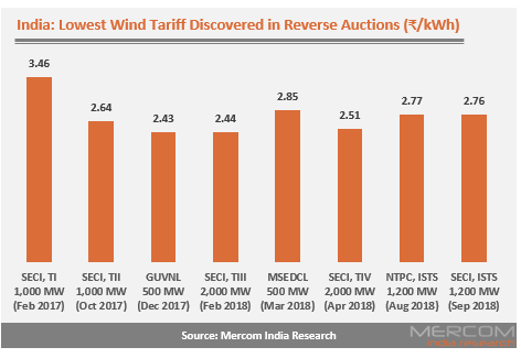 在這次拍賣中達(dá)到的關(guān)稅表明,2018年印度的風(fēng)電價(jià)格約為2.75(約合0.0378美元)/千瓦時(shí)。
